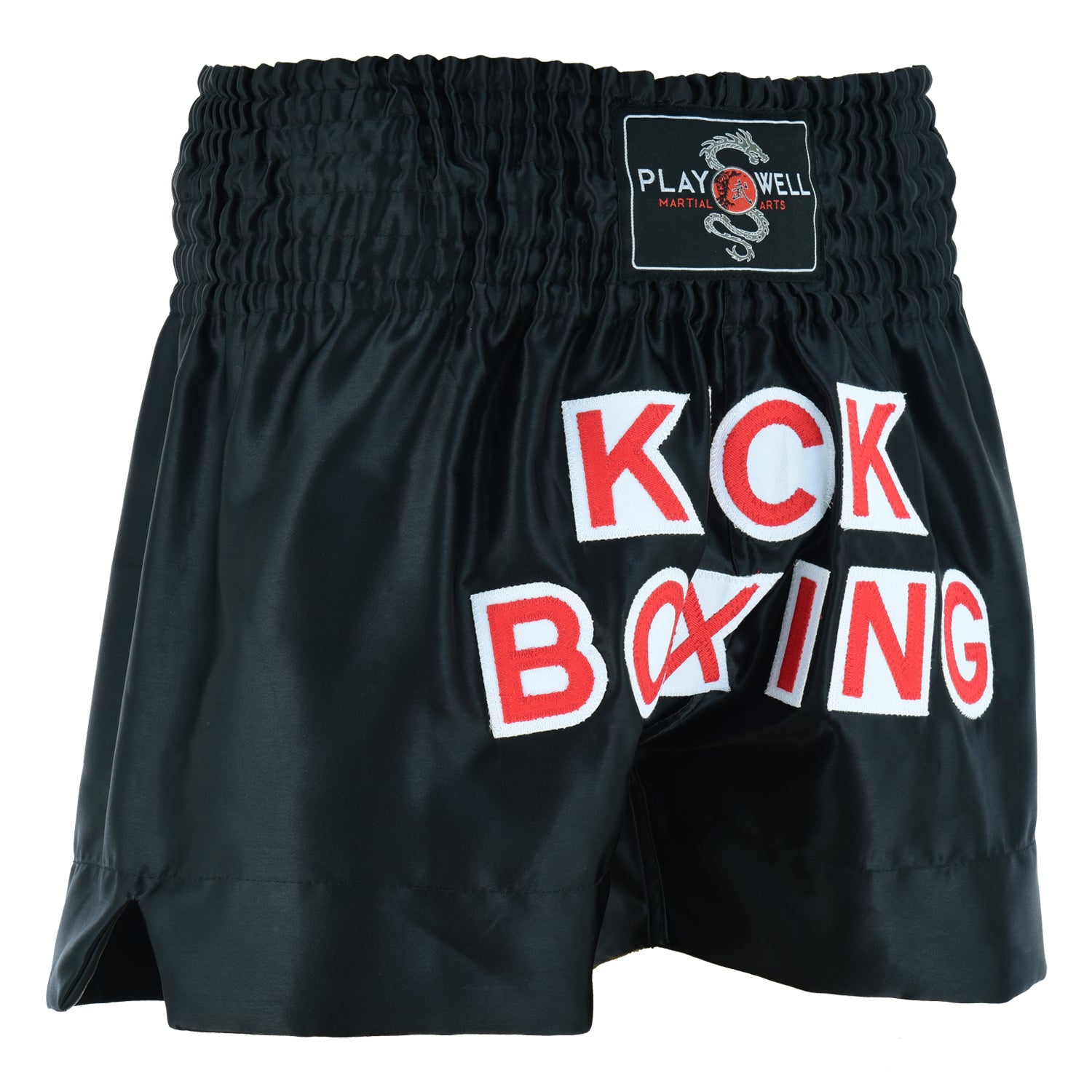 New Range of Competition Kickboxing Fight Shorts, Feature Muay Thai Cut on the Legs, Elasticated waist. Kickboxing Written on the front of the shorts.